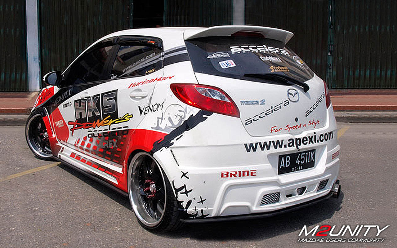 YOGYAKARTA | otomotifnet.com, Boleh dibilang, Mazda2 hatchback lansiran 2011 kepunyaan Andrew Aditya ini terbilang komplet dalam modifikasinya. Ya, karena pria asal Padang, Sumbar ini mensinergikan kebutuhan performa, estetika tampilan guna show-off di sejumlah ajang kontes modifikasi dan fungsional sebuah mobil yang masih dikategorikan layak jalan.
