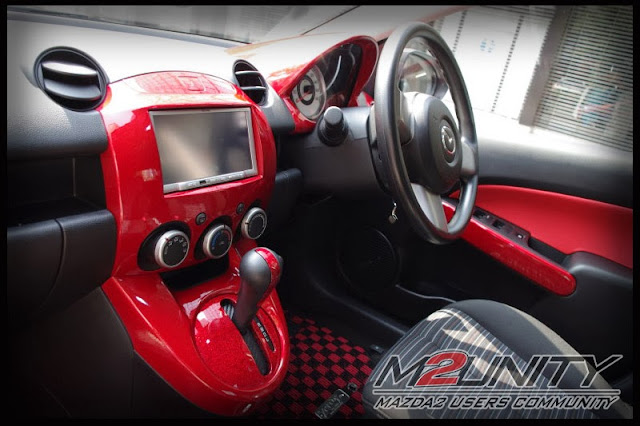 Kali ini admin sekedar membahas peningkatan tampilan untuk bagian interior saja. Kita tahu pada bagian interior Mazda2 terdapat bagian dashboard atau doortrim yang menggunakan cat.Nah.. pada bagian itulah yang akan dicat untuk menyesuaikan tema yang akan ditampilkan.