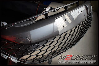 Untuk menselaraskan tema, bisa juga kita aplikasikan cat dengan warna yang sama pada bagian-bagian eksterior Mazda2. Apalagi pada bagian-bagian yang plastik, misalnya bagian bumper yang warnanya sama saja disetiap edisinya.