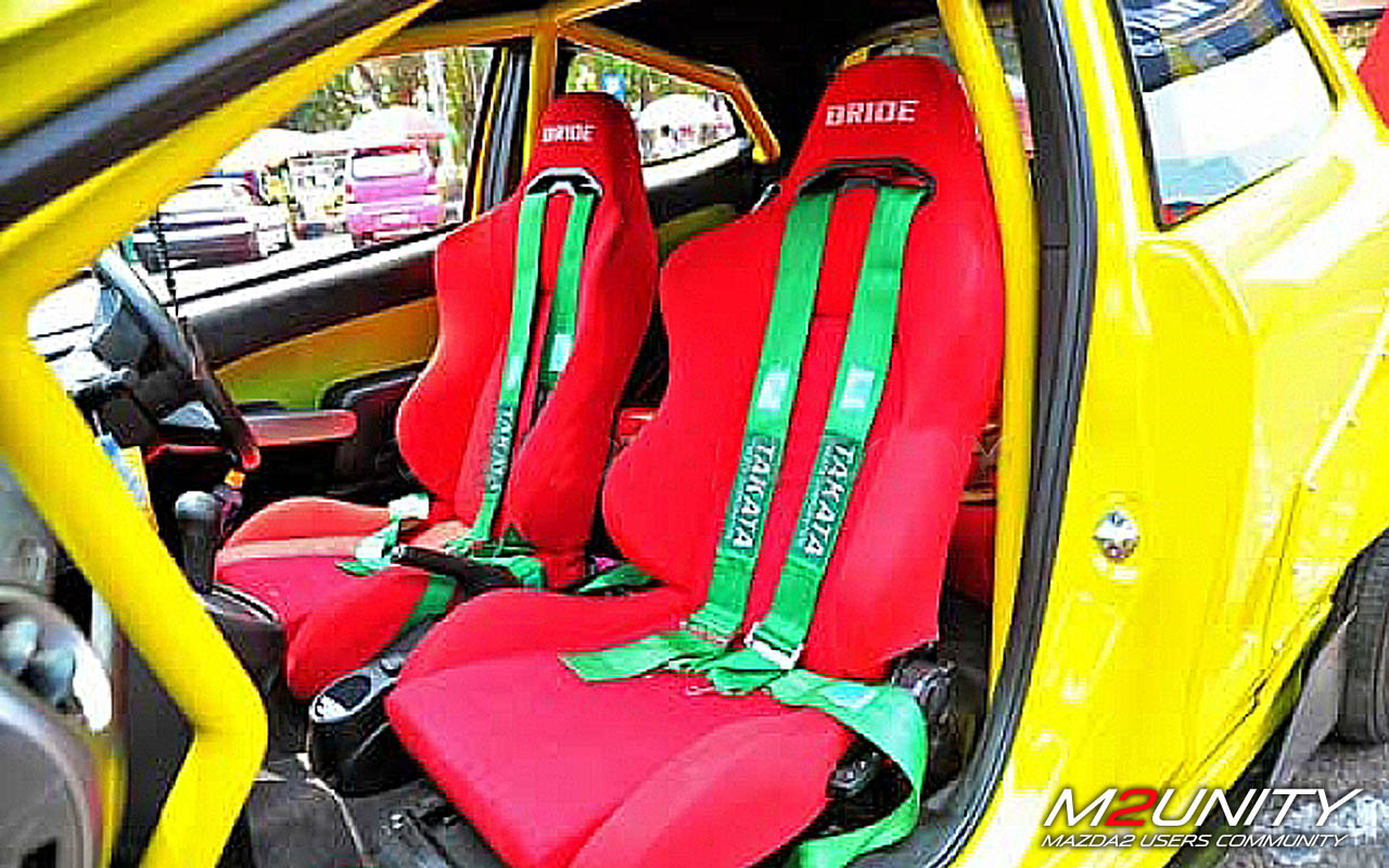 Agar serasi, kaki-kaki pun dilengkapi dengan pelek P1 Racing lebar 8-9 inci. "Untuk lowering kit saya tetap pakai per bawaan Mazda2 aslinya, tapi sedikit dipotong supaya ketinggiannya jadi turun," tutur pria yang bergabung di komunitas BJG ini.